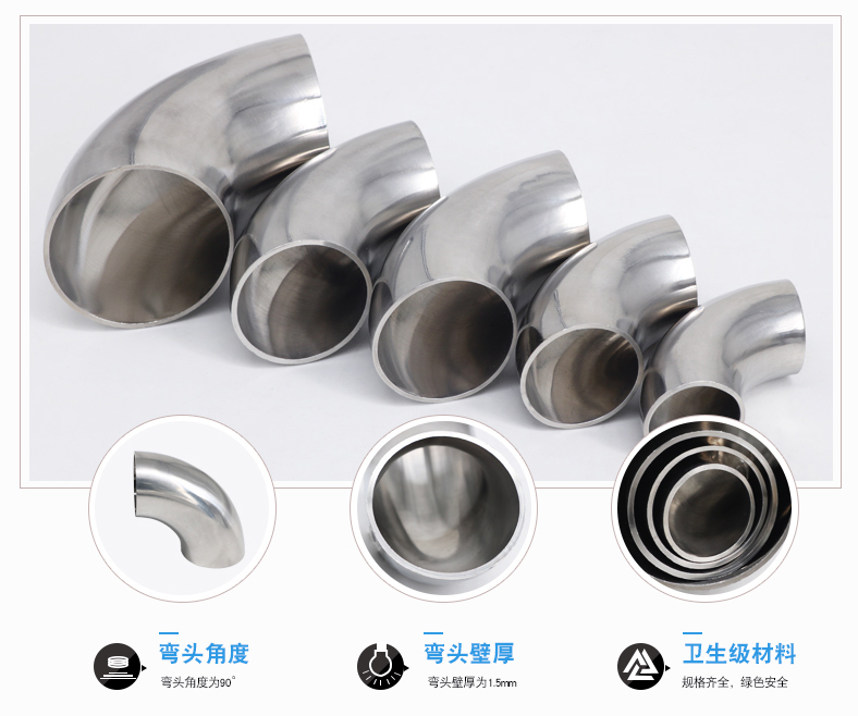 衛生級不銹鋼彎頭是管道安裝中常用的一種連接用管件,用于管道拐彎外的連接。衛生級彎頭的用途一般用于連接兩根公稱通徑相同或者不同的管子,使管路作一定角度轉彎。因此,衛生級彎頭較適用于乳品、食品、啤酒、飲料、制藥、化妝品等工業領域的不銹鋼管路系統上。